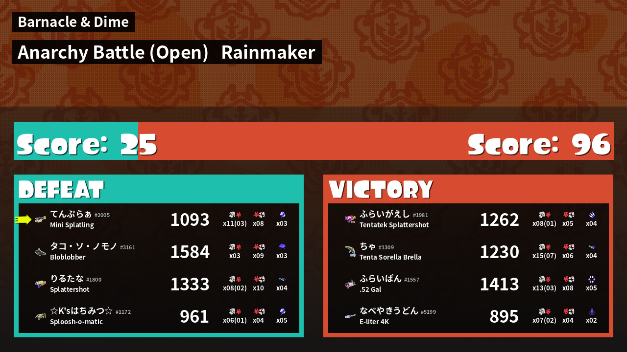 | Mode | Rainmaker - Anarchy Battle (Open) | ||