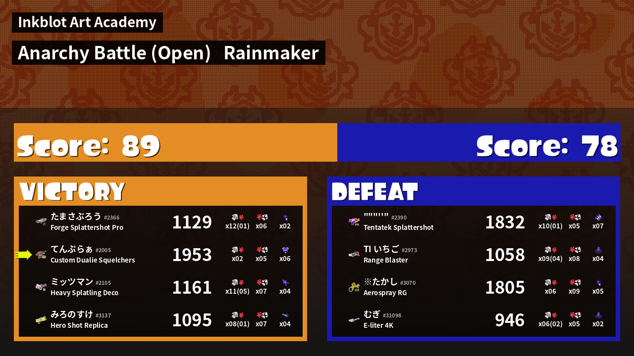 | Mode | Rainmaker - Anarchy Battle (Open) | ||