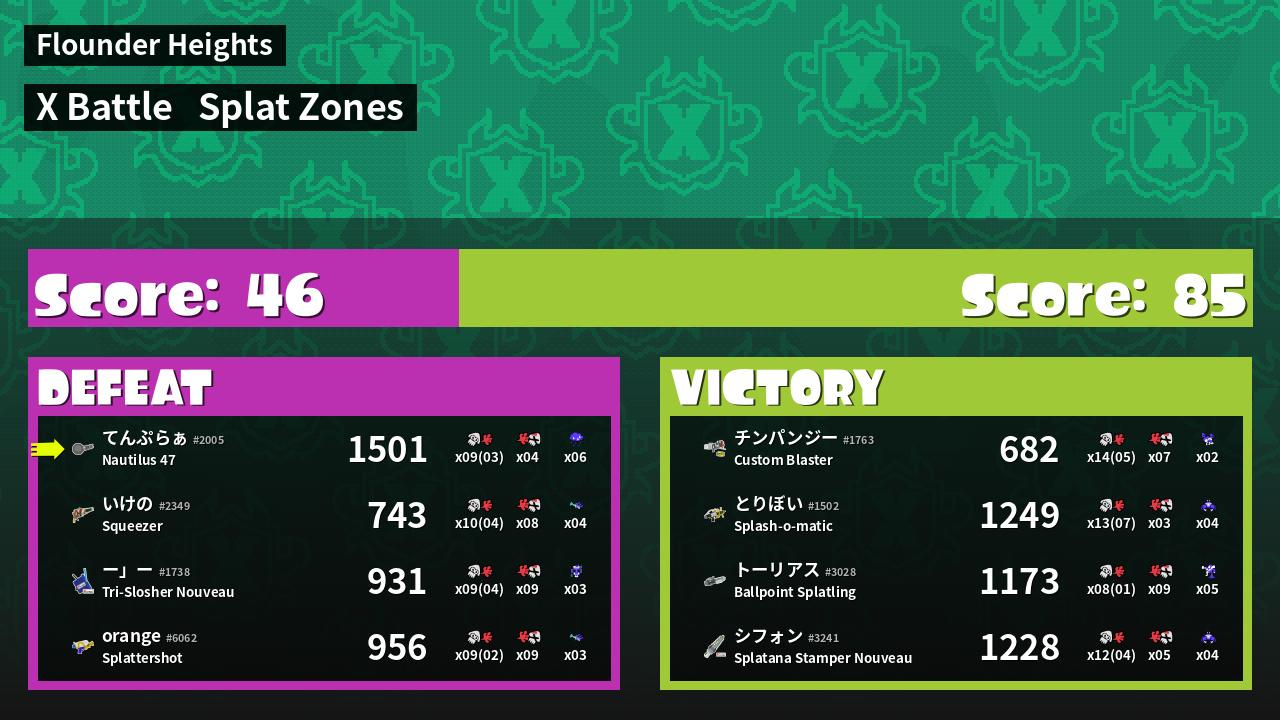 | Mode | Splat Zones - X Battle | ||