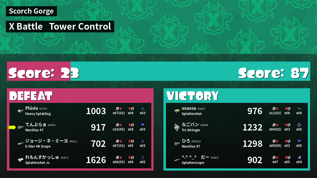 | Mode | Tower Control - X Battle | ||