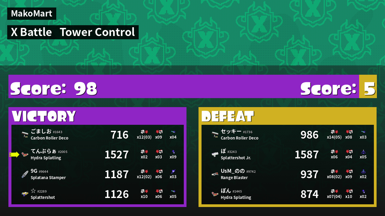 | Mode | Tower Control - X Battle | ||