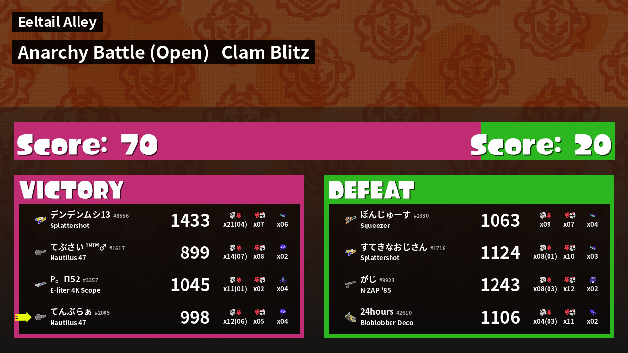 | Mode | Clam Blitz - Anarchy Battle (Open) | ||