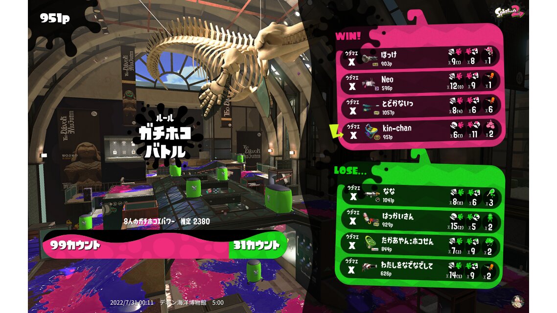 Results of kin-chan's Battle