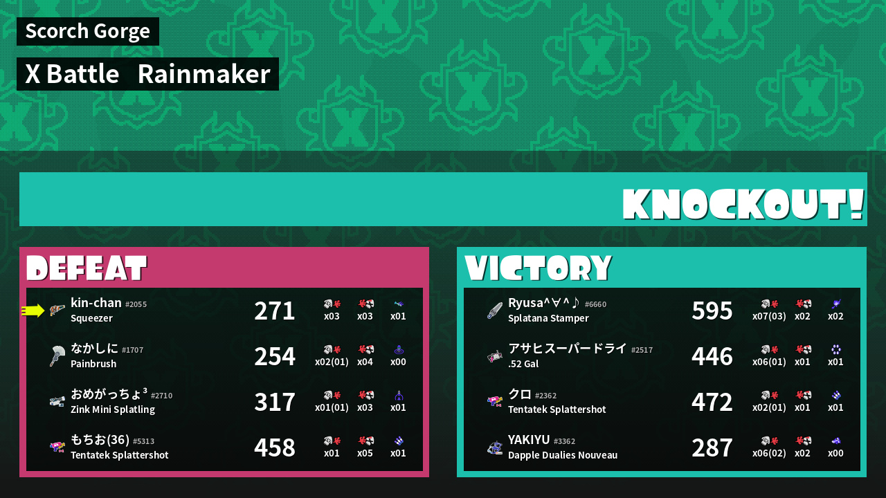 | Medals | #1 Overall Splatter #1 Enemy Splatter #1 Rainmaker Stopper | ||