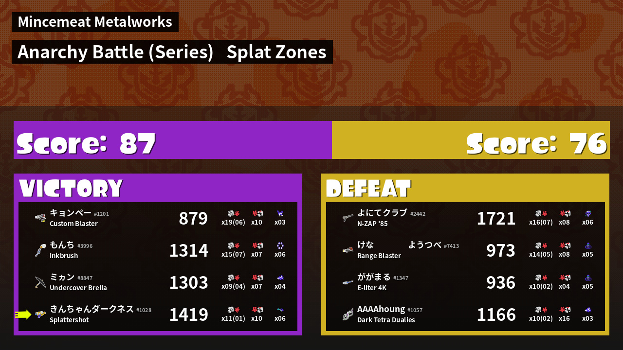 Kills / Deaths | 10 + 1 / 10 = Kill Ratio: 1.00 | ||