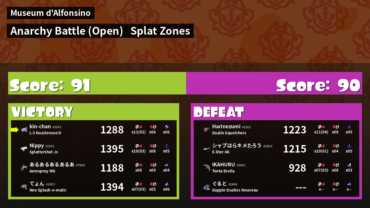 | Mode | Splat Zones - Anarchy Battle (Open) | ||