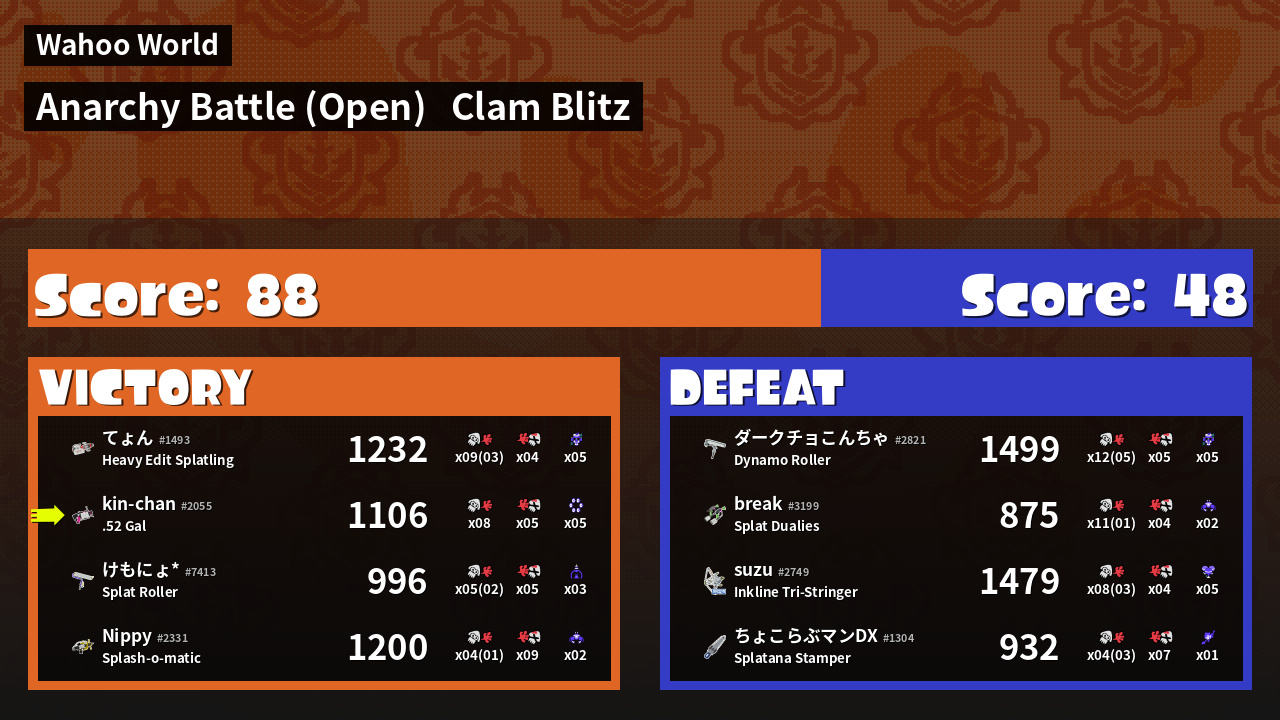 | Mode | Clam Blitz - Anarchy Battle (Open) | ||