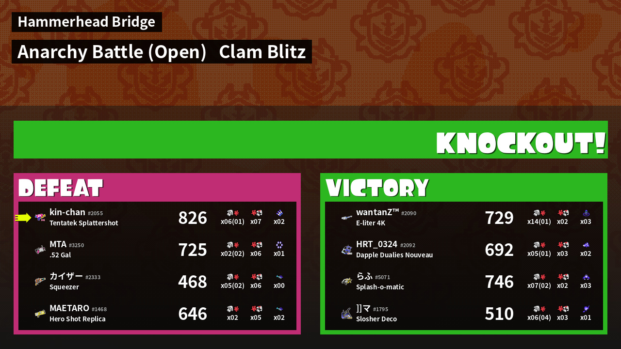 | Mode | Clam Blitz - Anarchy Battle (Open) | ||
