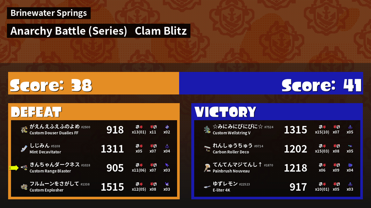 | Mode | Clam Blitz - Anarchy Battle (Series) | ||