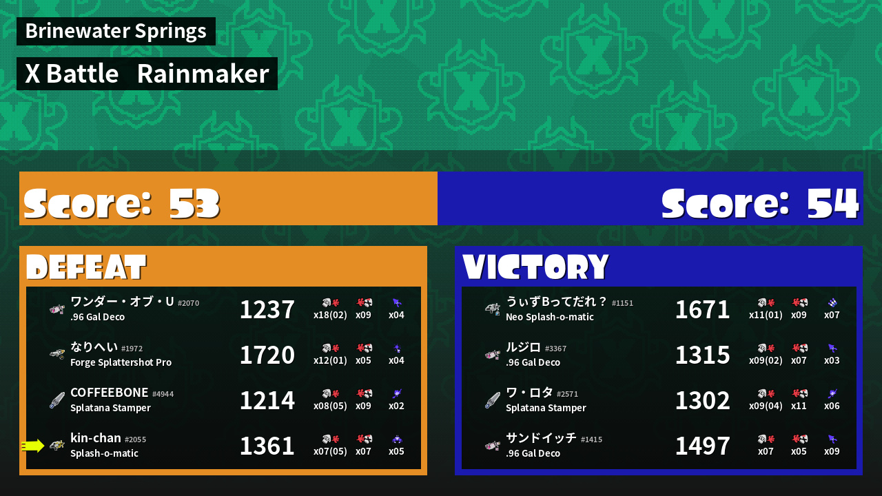 | Medals | #1 Splat Assister #1 Crab Tank User #2 Score Booster | ||