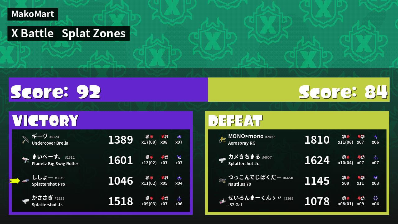 | Weapon | Splattershot Pro ( Angle Shooter / Crab Tank) |