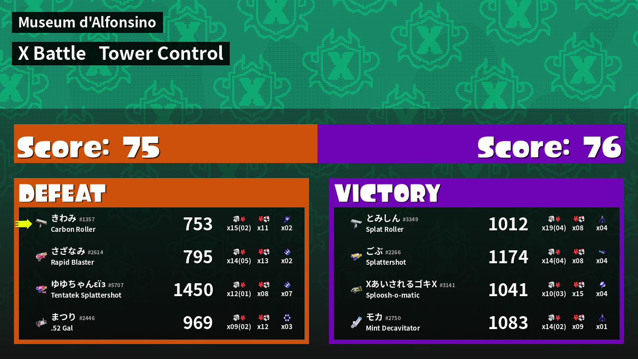 | Mode | Tower Control - X Battle | ||