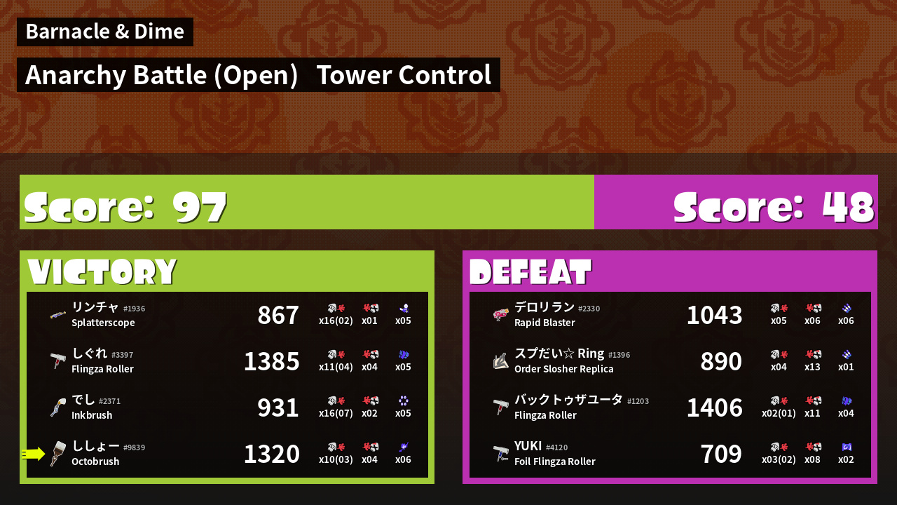 Name | Weapon | Inked | ![]() |