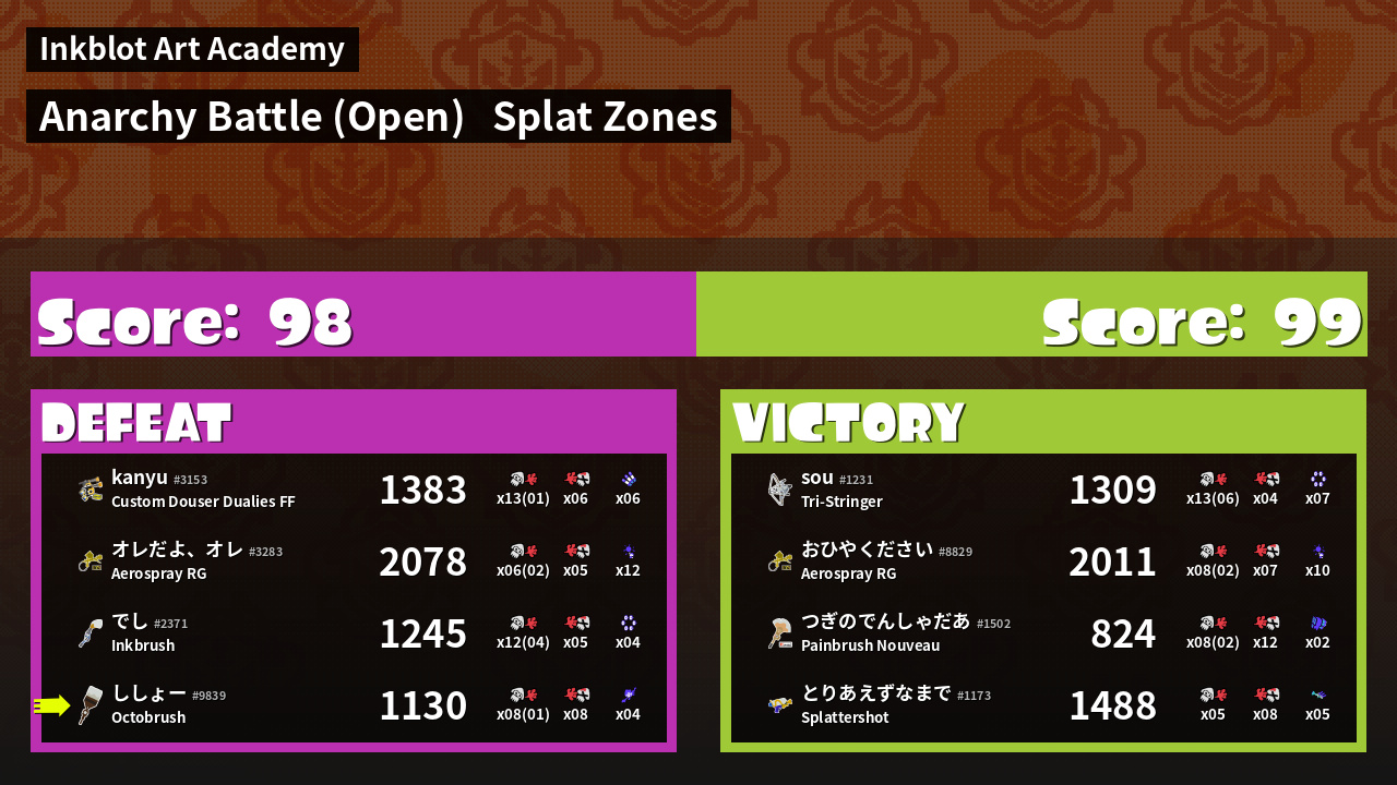 | Mode | Splat Zones - Anarchy Battle (Open) |