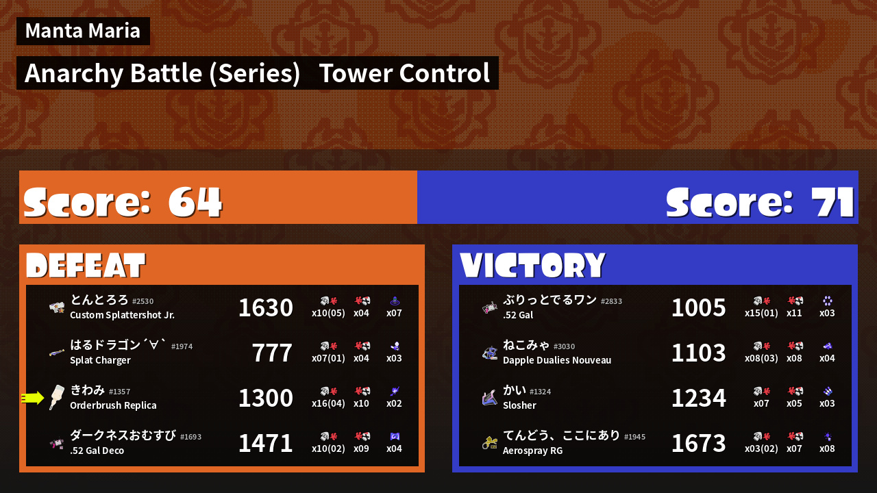 | Mode | Tower Control - Anarchy Battle (Series) | ||