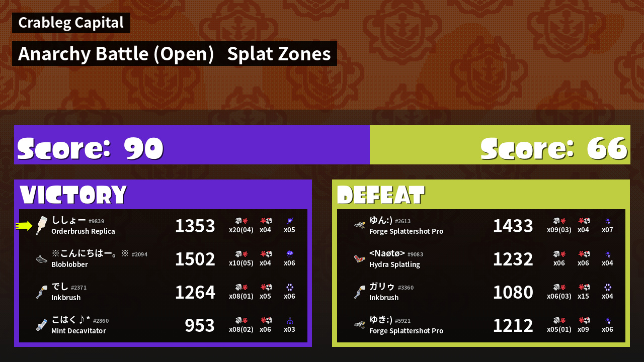 | Mode | Splat Zones - Anarchy Battle (Open) |