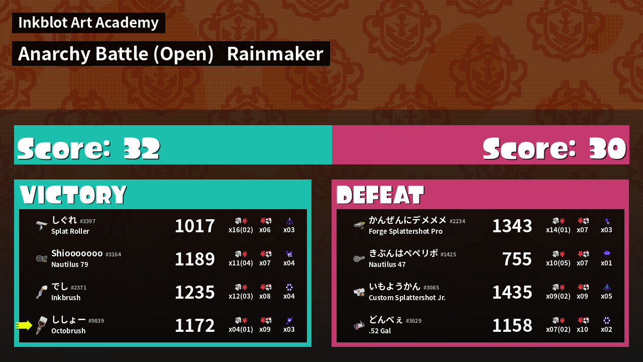 Name | Weapon | Inked | ![]() |