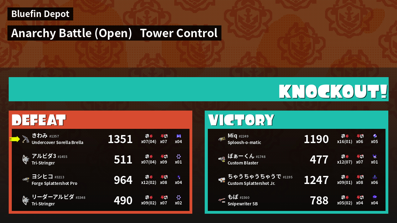 | Mode | Tower Control - Anarchy Battle (Open) | ||