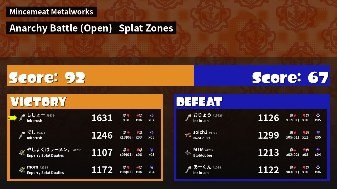 | Mode | Splat Zones - Anarchy Battle (Open) |