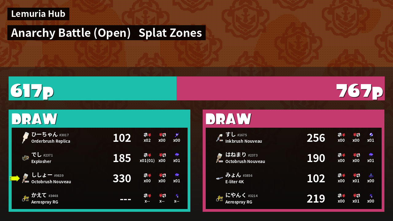 Name | Weapon | Inked | ![]() |