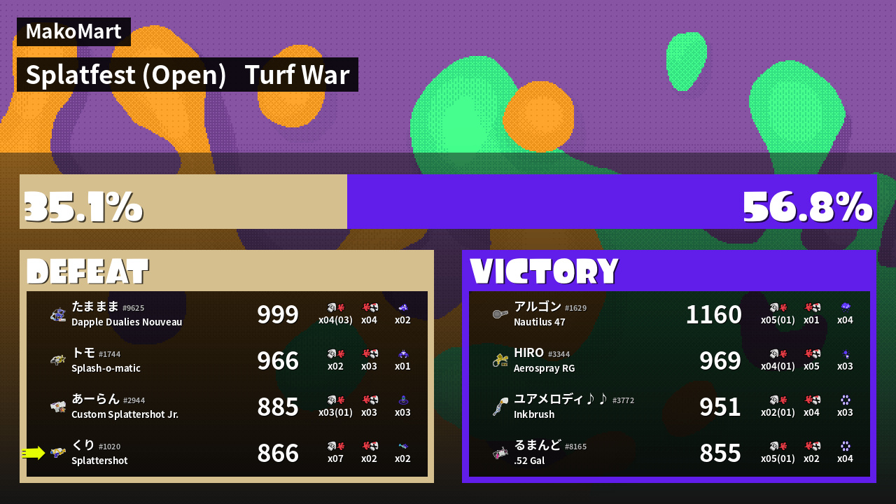 | Mode | Turf War - Splatfest (Open) | ||