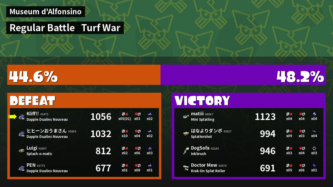 | Mode | Turf War - Regular Battle | ||