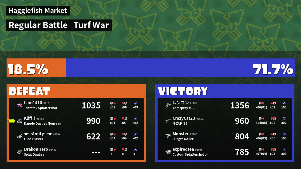 | Mode | Turf War - Regular Battle | ||