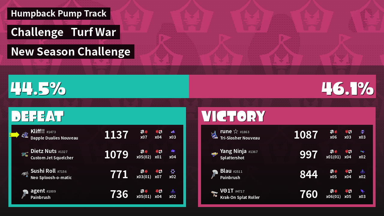 | Mode | Turf War - Challenge | ||