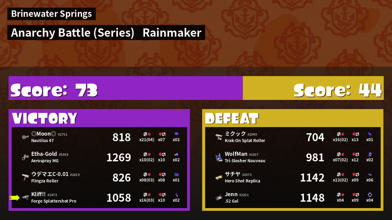 | Medals | #1 Rainmaker Stopper #1 Ink Consumer #2 Overall Splatter | ||
