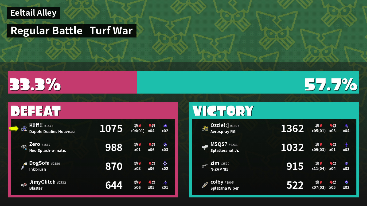 | Mode | Turf War - Regular Battle | ||