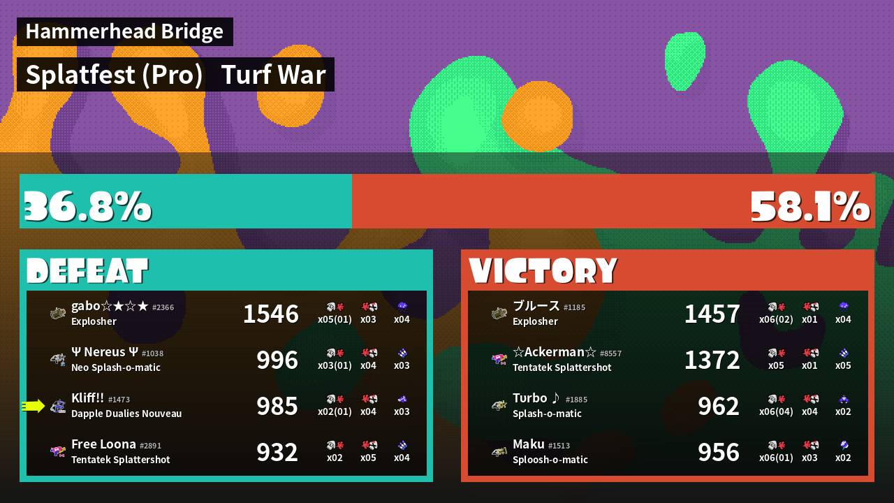 | Medals | #1 Home-Base Inker #1 Splat Assister #1 Ground Traveler | ||