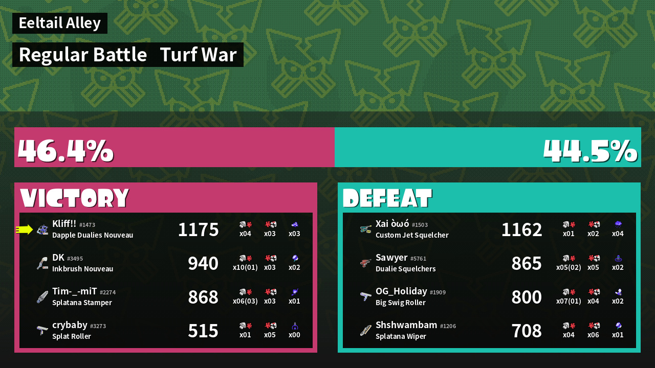 | Mode | Turf War - Regular Battle | ||