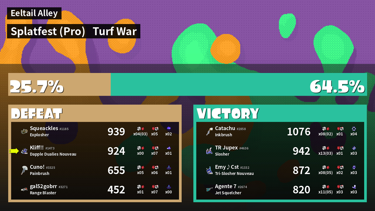 | Mode | Turf War - Splatfest (Pro) | ||