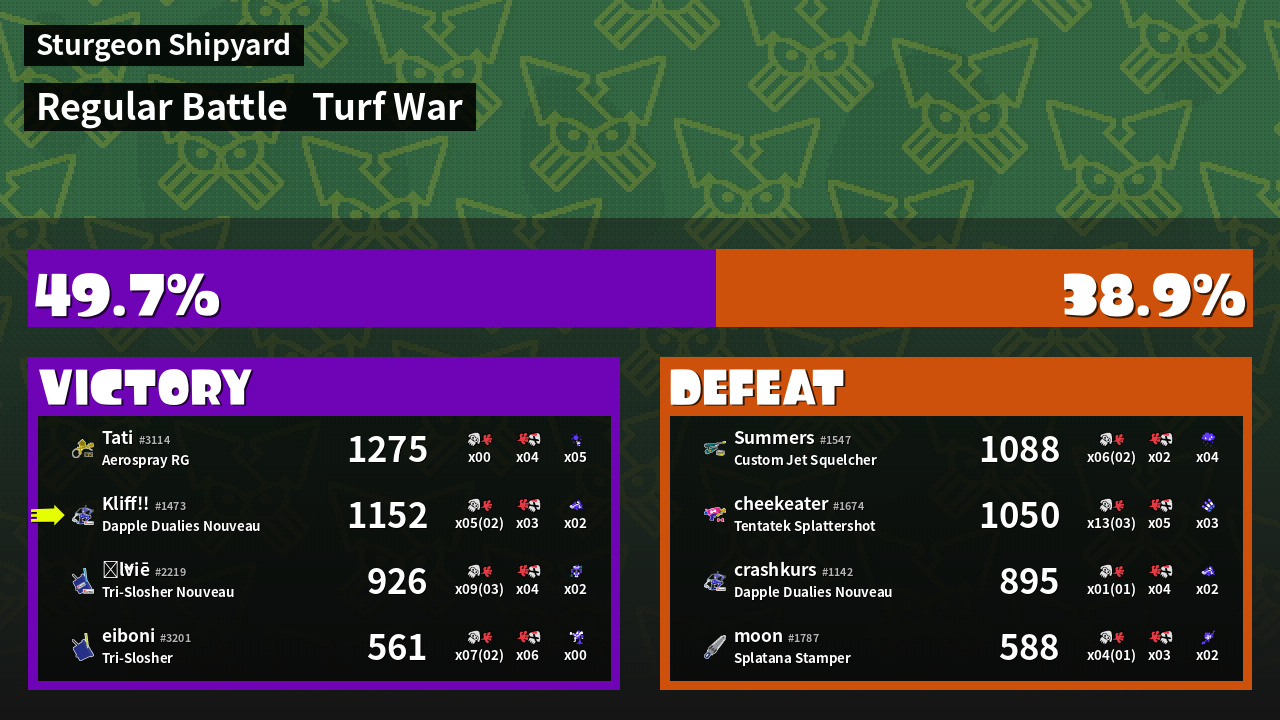 | Mode | Turf War - Regular Battle | ||