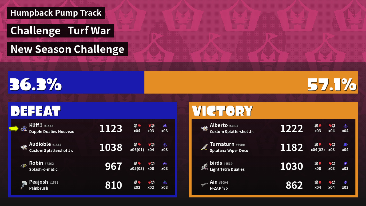 | Mode | Turf War - Challenge | ||