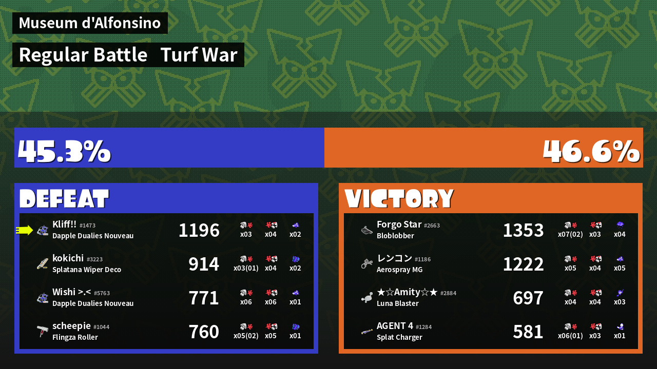 | Mode | Turf War - Regular Battle | ||
