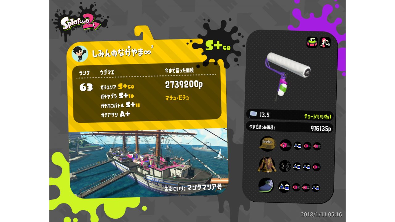 | Weapon | Splat Roller ( Curling Bomb, Splashdown) | ||||||||||||||||||||||||||||