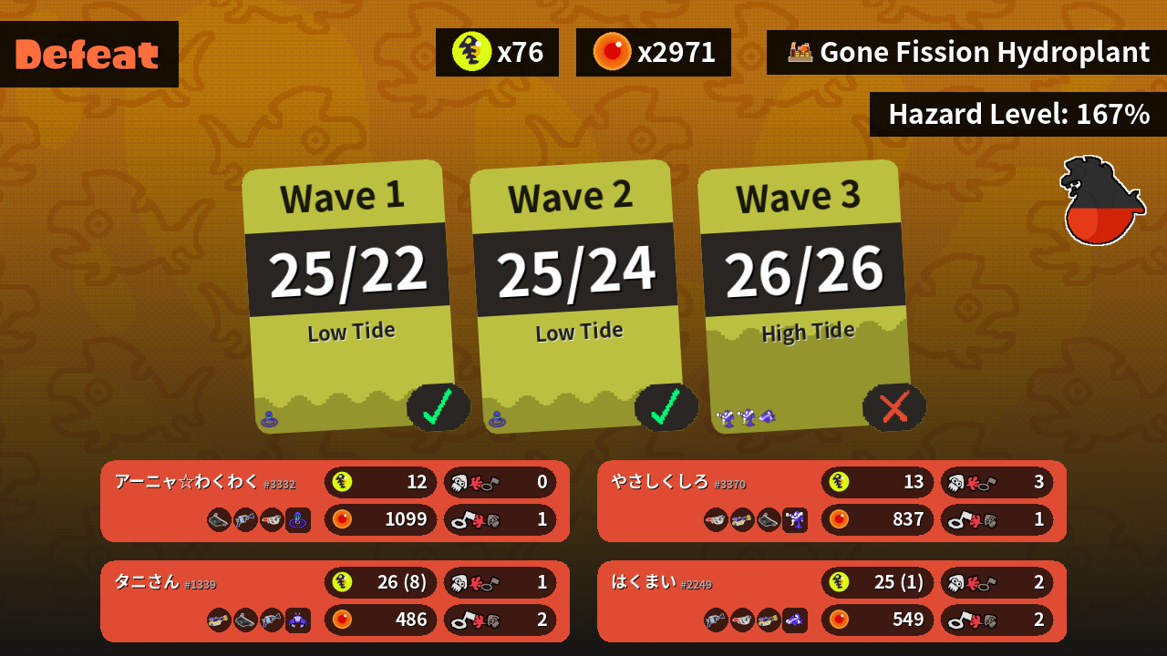 | Weapons | Bloblobber H-3 Nozzlenose Goo Tuber | Mini Splatling Bloblobber H-3 Nozzlenose | H-3 Nozzlenose Goo Tuber Mini Splatling | Goo Tuber Mini Splatling Bloblobber |