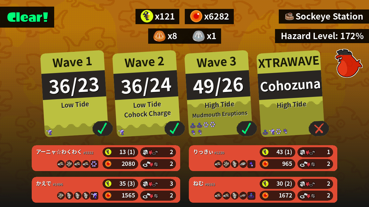 | Weapons | Grizzco Blaster Grizzco Dualies Grizzco Blaster Grizzco Blaster | Grizzco Blaster Grizzco Dualies Grizzco Stringer Grizzco Brella | Grizzco Dualies Grizzco Stringer Grizzco Stringer Grizzco Stringer | Grizzco Blaster Grizzco Blaster Grizzco Stringer Grizzco Charger |