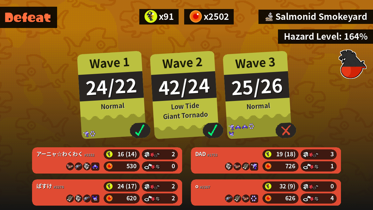 | Weapons | Hydra Splatling H-3 Nozzlenose REEF-LUX 450 | H-3 Nozzlenose Splat Dualies Hydra Splatling | Splat Dualies REEF-LUX 450 H-3 Nozzlenose | REEF-LUX 450 Hydra Splatling Splat Dualies |