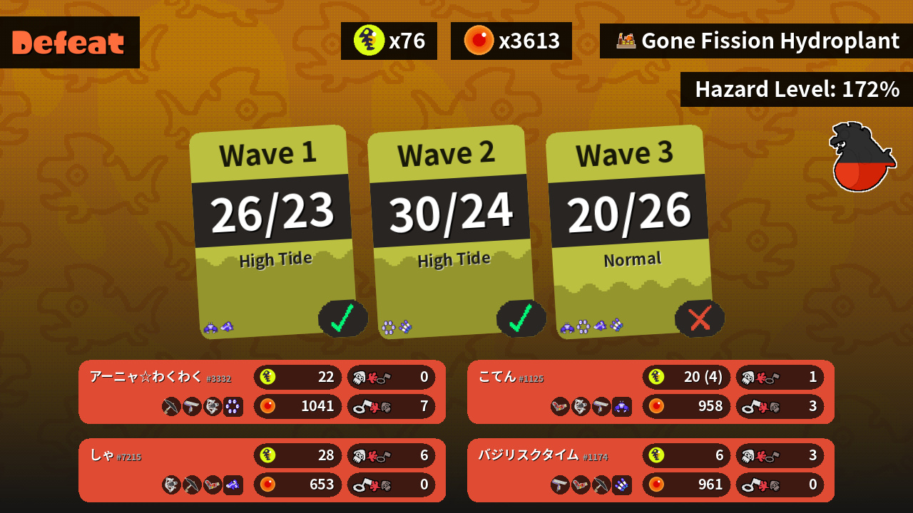 | Weapons | Undercover Brella Splat Roller REEF-LUX 450 | REEF-LUX 450 Undercover Brella Hydra Splatling | Hydra Splatling REEF-LUX 450 Splat Roller | Splat Roller Hydra Splatling Undercover Brella |