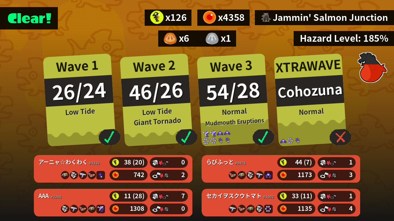 | Boss Salmonid | 8 | 7 | 6 | 13 |