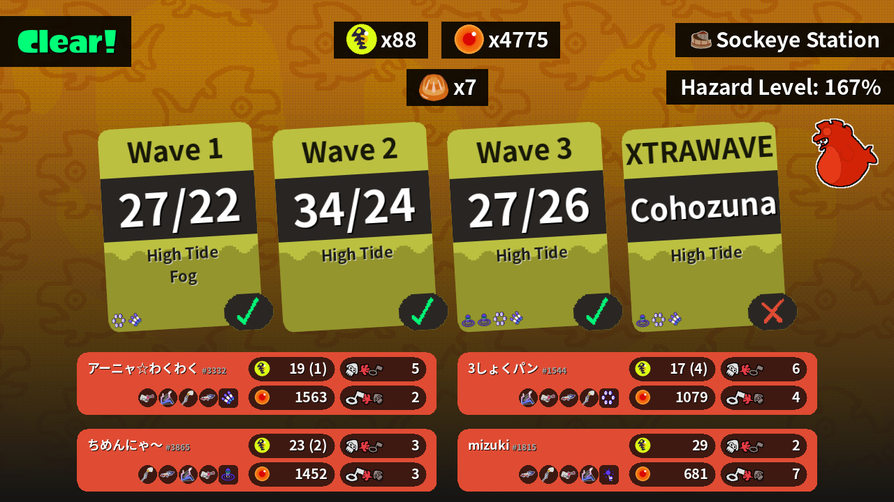 | Weapons | Heavy Splatling Slosher Inkbrush Splattershot Pro | Splattershot Pro Inkbrush Heavy Splatling Slosher | Inkbrush Splattershot Pro Slosher Heavy Splatling | Slosher Heavy Splatling Splattershot Pro Inkbrush |