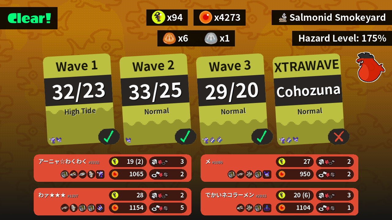 | Boss Salmonid | 20 | 21 | 9 | 0 |