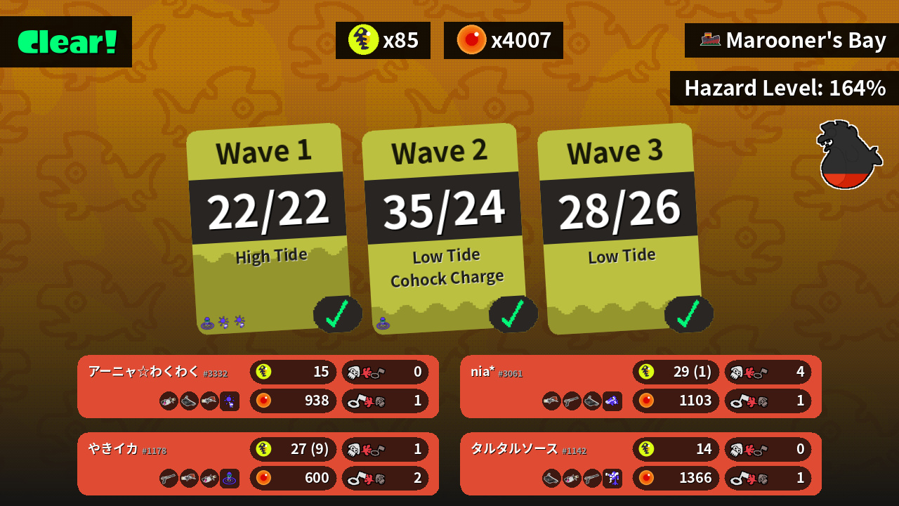 | Weapons | .96 Gal Bloblobber Range Blaster | Range Blaster N-ZAP '85 Bloblobber | N-ZAP '85 Range Blaster .96 Gal | Bloblobber .96 Gal N-ZAP '85 |