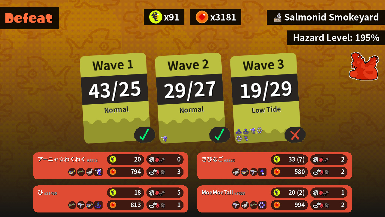 | Boss Salmonid | 11 | 12 | 19 | 7 |