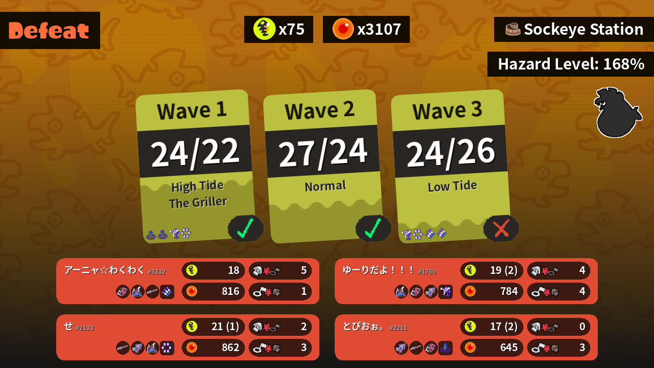 | Weapons | Dapple Dualies Slosher Splat Charger | Splat Charger Glooga Dualies Slosher | Slosher Dapple Dualies Glooga Dualies | Glooga Dualies Splat Charger Dapple Dualies |