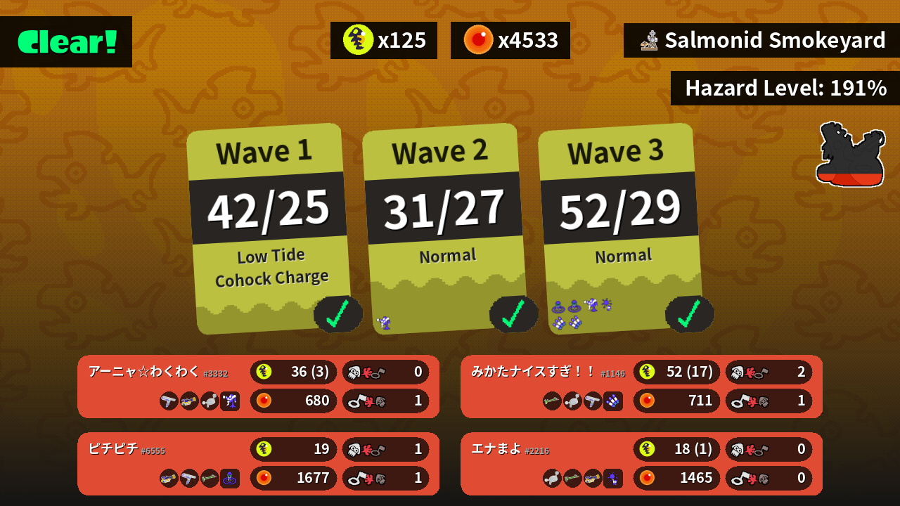 | Boss Salmonid | 13 | 18 | 18 | 15 |