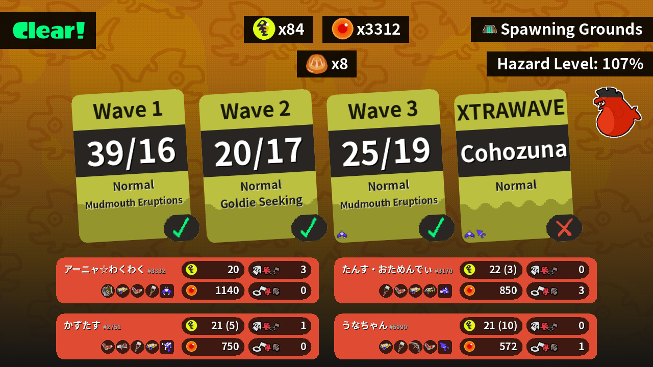 | Weapons | Grizzco Slosher Splattershot Hydra Splatling Octobrush | Octobrush Hydra Splatling Splattershot Sploosh-o-matic | Hydra Splatling Blaster Octobrush Splattershot | Splattershot Octobrush Tenta Brella Hydra Splatling |