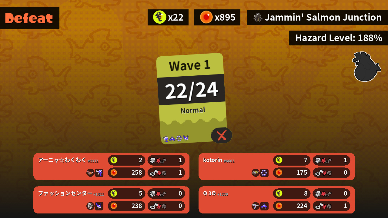| Boss Salmonid | 1 | 2 | 5 | 8 |